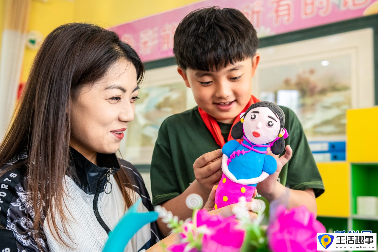 5月9日,呼和浩特市玉泉区五塔寺东街小学学生展示制作的以自己妈妈形象为主题的彩泥作品。新华网发(丁根厚 摄)