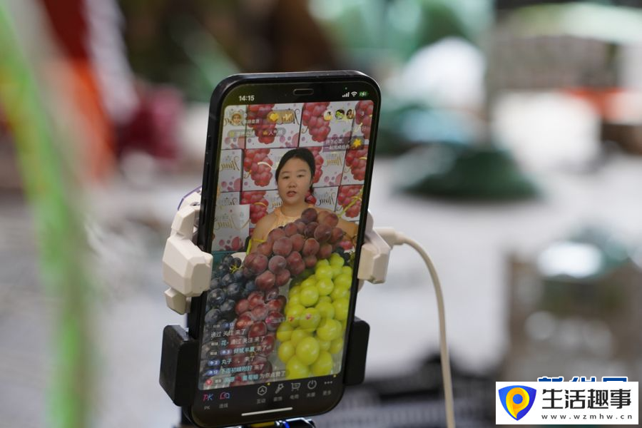 主播通过电商平台销售新鲜上市的葡萄(6月3日摄)。新华网发(杨金蕾 摄)